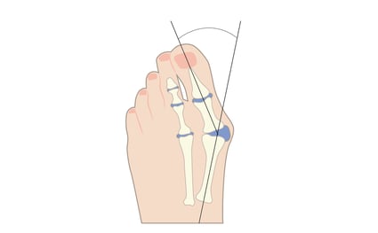 外反母趾というと、足先が尖っているパンプスをずっと履いていたから変形したように見えますが、